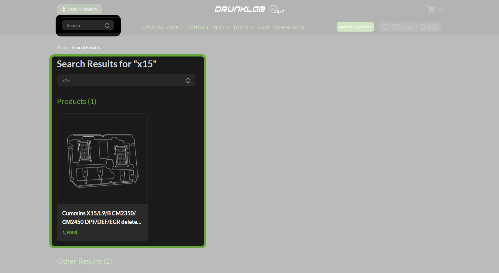 Go to the DL.GE website and enter the name of your engine model in the search bar (in our example, X15) or the ECM model (in our example, CM2350).