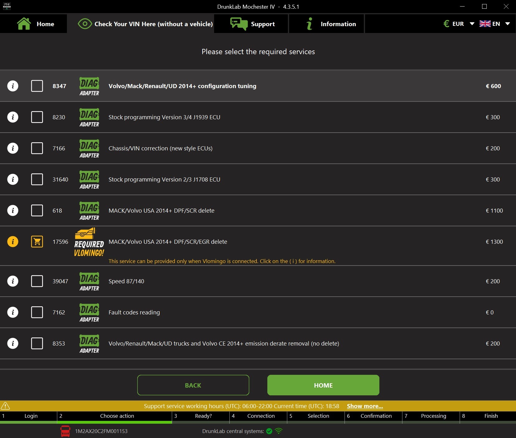 After inputting the VIN of your vehicle you are presented with the service selection screen, as shown below: