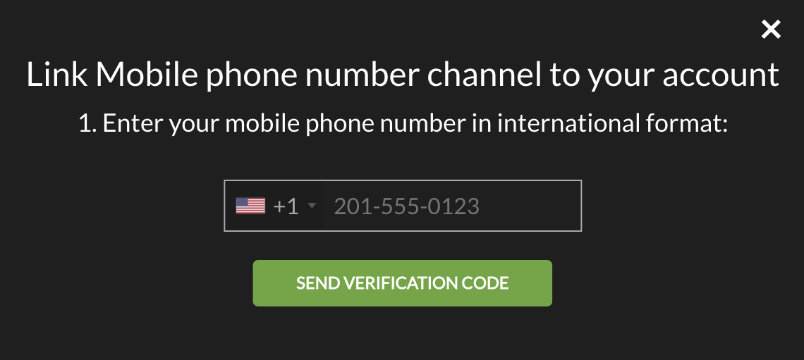 1. Enter your phone number into the field and click “Send Verification Code”. Make sure you are entering it in the international format, starting with “+”.