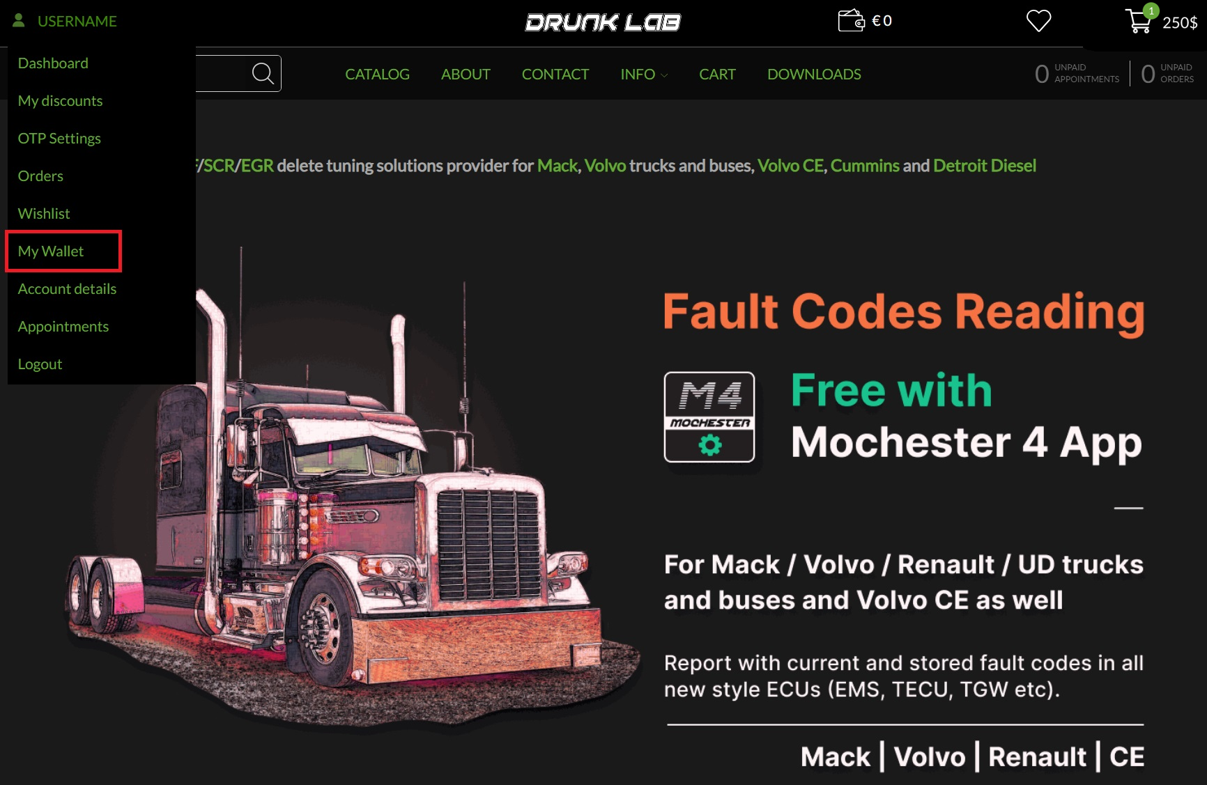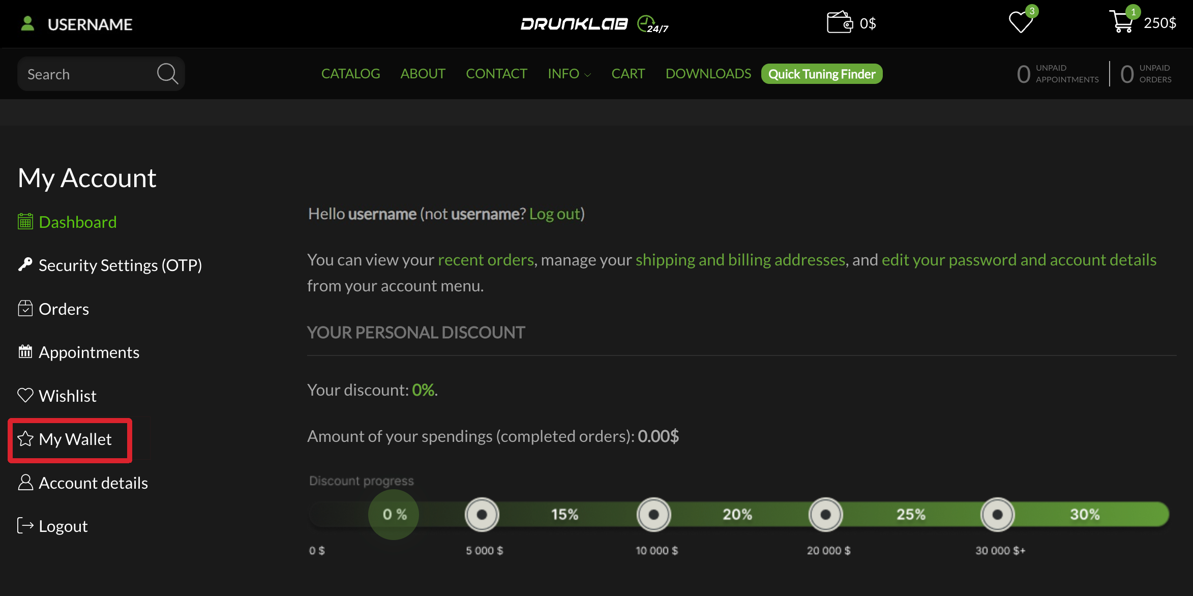 Alternatively, you can click on your username and be presented with your account dashboard. From there you can select “My Wallet” from the menu on the left.